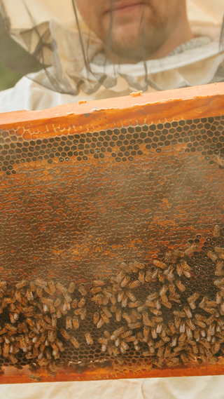 Wild honeybees choose to live in the hollows of large trees and logs because they provide a large protective thermal mass, reducing the amount of energy required to maintain the hive’s climate.